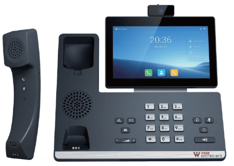 Enhanced Cyber security Webb IP Desktop phone with 7" landscape touch screen display, camera, hands free speaker phone